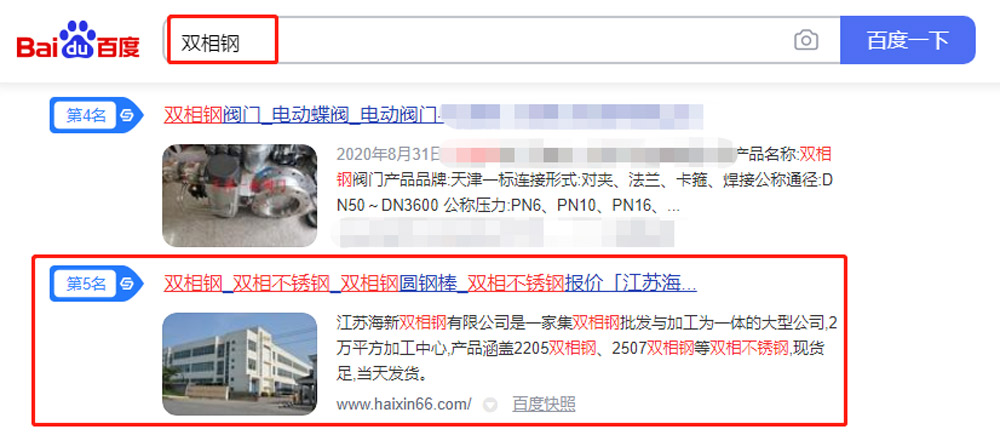 江蘇海新雙相鋼有限公司雙相鋼營銷型網站建站及優化案例