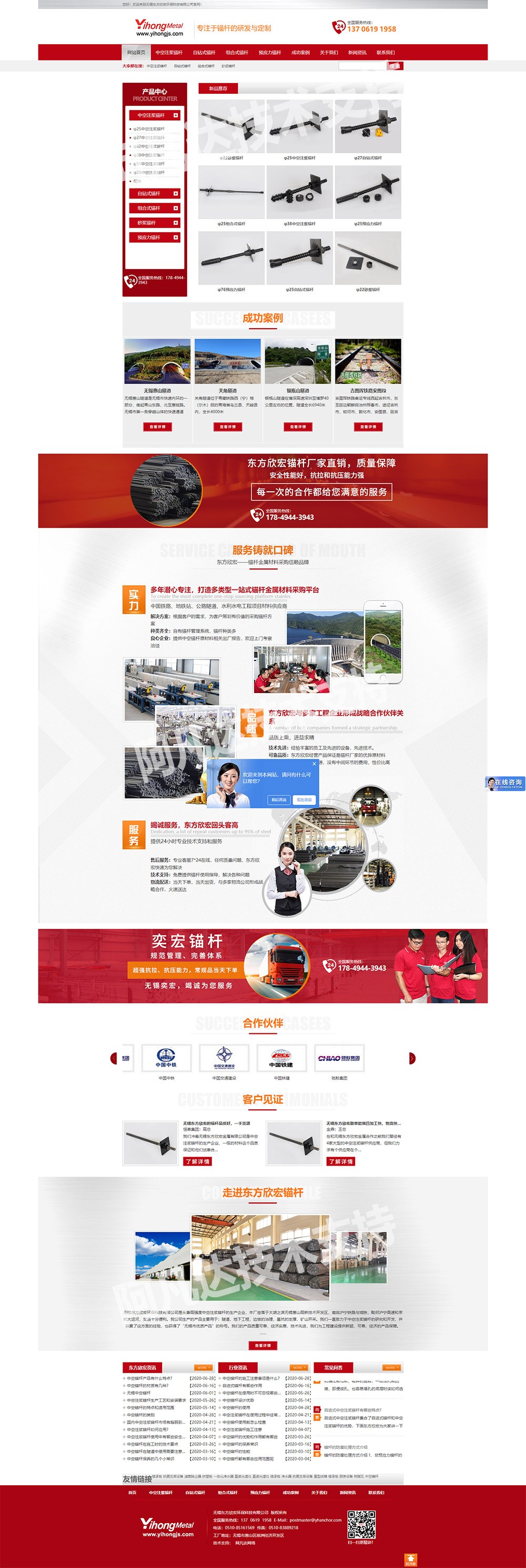 【公司簡介】:無錫東方欣宏環??萍加邢薰臼菑氖赂邚姸戎锌兆{錨桿的生產企業,本廠座落于太湖之濱無錫惠山高新技術開發區,南臨滬寧鐵路與城鐵,毗鄰滬寧高速和京杭大運河,交通十分便利。我公司生產的產品主要用于:隧道,地下工程,邊坡的治理,基坑的支撐,礦山開采。我們一直致力于中空注漿錨桿的研究和開發,并積累了這方面的經驗,也獲得了“無錫市優質產品”的稱號。我們的產品質量可靠,經濟實惠,技術先進,我們為工程建設提供新穎,可靠,經濟的產品保障。